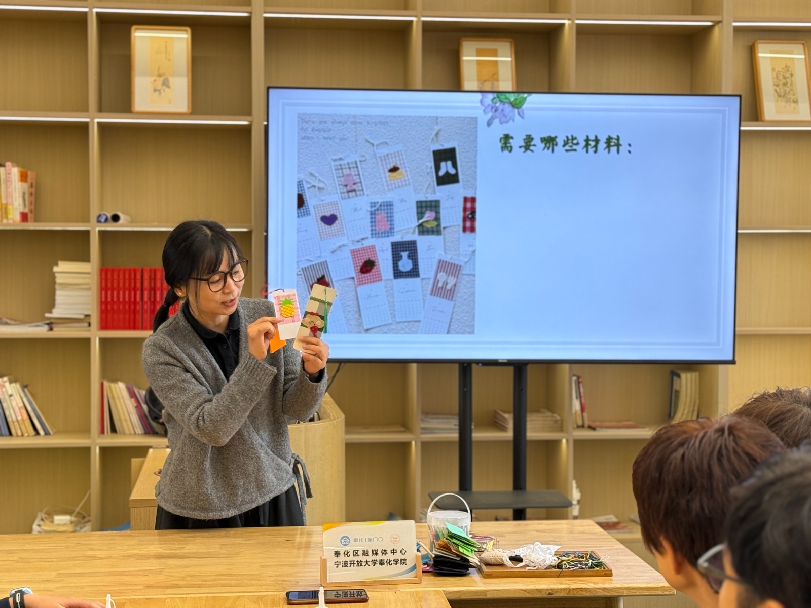 为丰富社区居民精神文化生活,传承传统手工艺魅力,11月15日上午,“奉化丨家门口”社区平台联合宁波开放大学奉化学院在长汀未来社区精心组织了“指尖生花,书香传情”布艺书签制作活动,吸引了10余名社区居民、亲子家庭踊跃参与,在一针一线中感受手工乐趣,在方寸之间寄托阅读情怀。