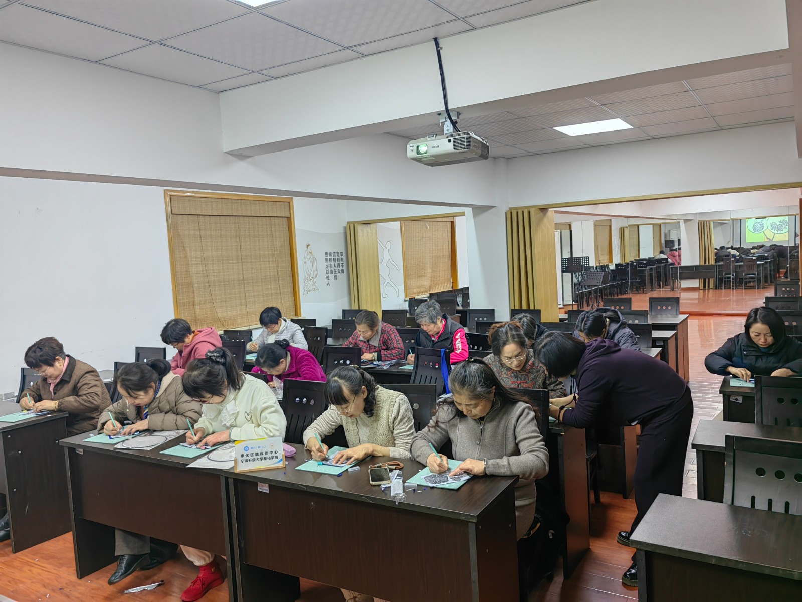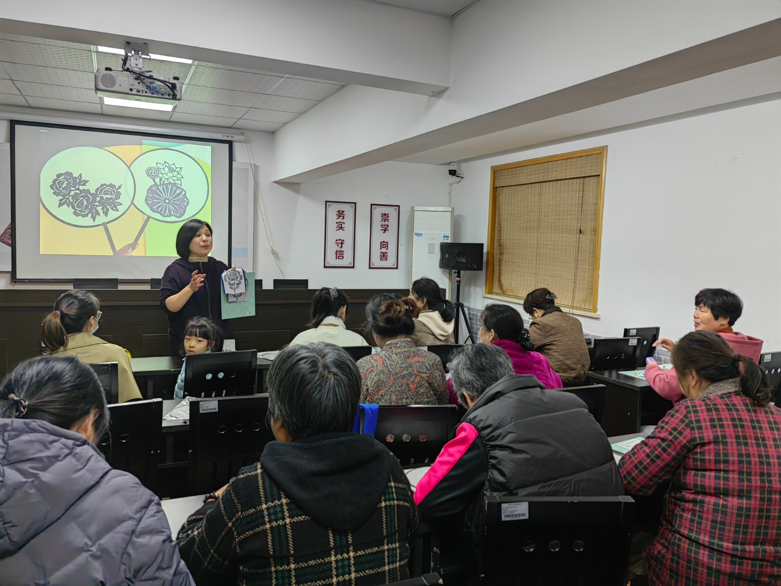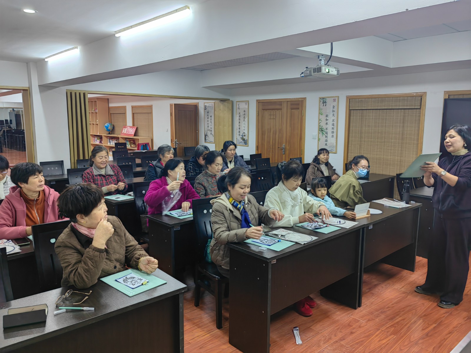 11月18日晚,金钟未来社区东郡尚都邻里中心二楼暖意融融,“奉化 | 家门口” 社区平台联合宁波开放大学奉化学院在此开展了一场别开生面的花卉团扇手工课。陈老师带领社区居民们以扇为媒、以刀为笔,在刻绘粘贴间感受传统手工艺的独特魅力,共度一段惬意的晚间时光。
