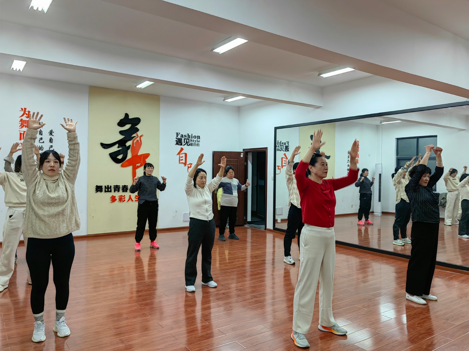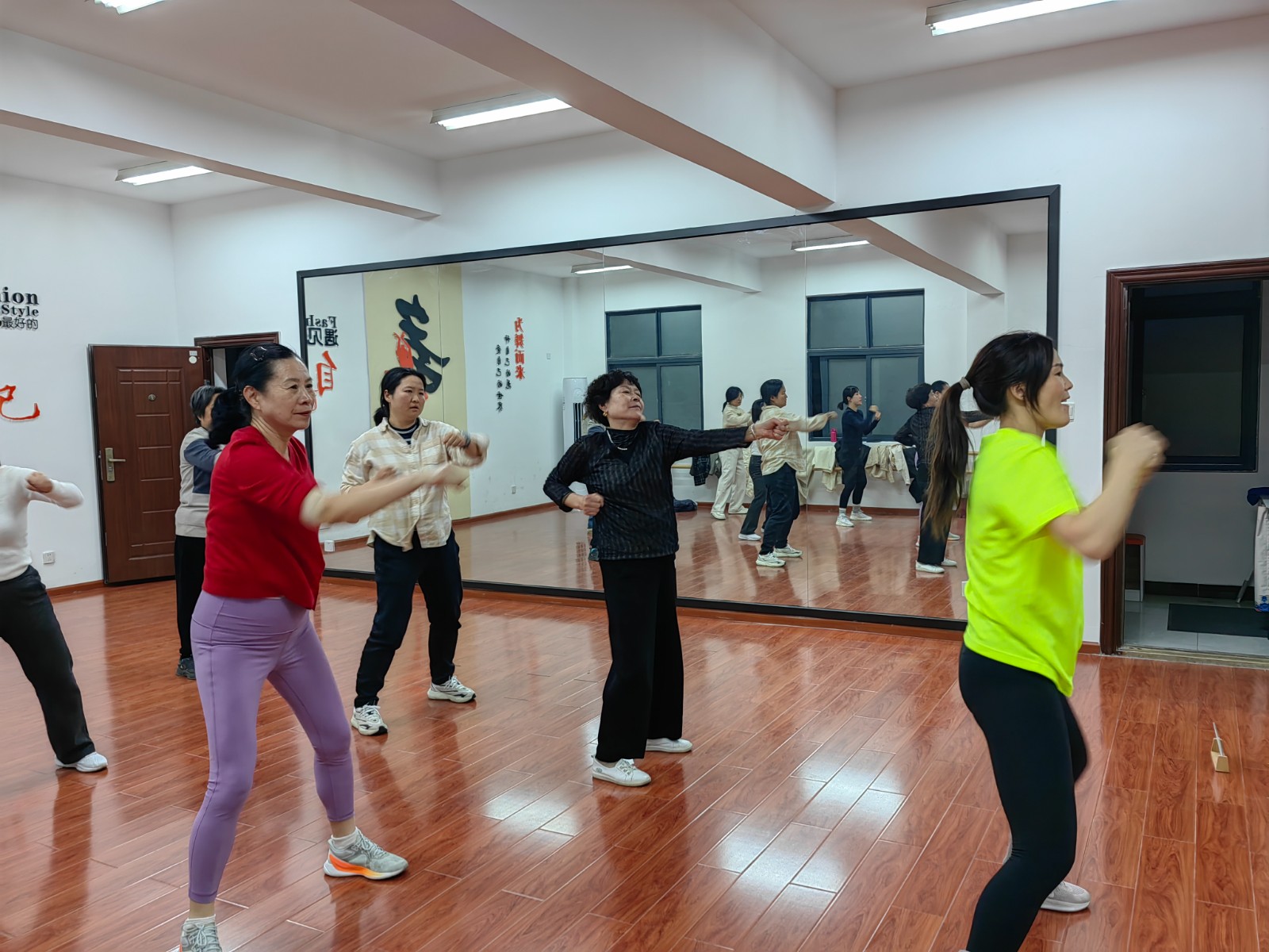 考虑到中老年群体肩颈易劳损的特点,竺老师精心设计了针对性动作,从基础拉伸到精准塑形,每一个步骤都耐心示范、手把手指导。遇到动作不到位的居民,竺老师逐一纠正发力姿势,确保大家在安全运动的同时收获实效。近一个小时的活动中,活动室里充满了整齐的节拍声与欢快的交流声,居民们跟随节奏认真练习,充分活动肩背经络,释放日常积累的疲劳。