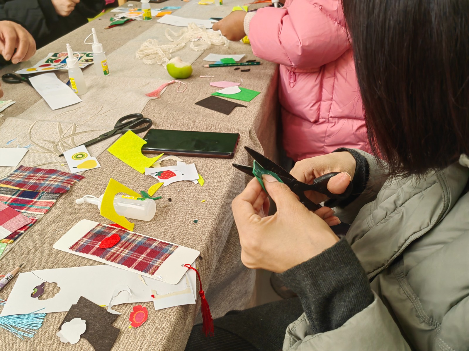 12月14日,“奉化丨家门口”社区平台联合宁波开放大学奉化学院在迎恩未来社区开展 “布语时光・书签手作局” 布艺书签 DIY 活动,众多社区居民与孩子齐聚一堂,在针与线的交织中,为书页打造专属的温柔标记。