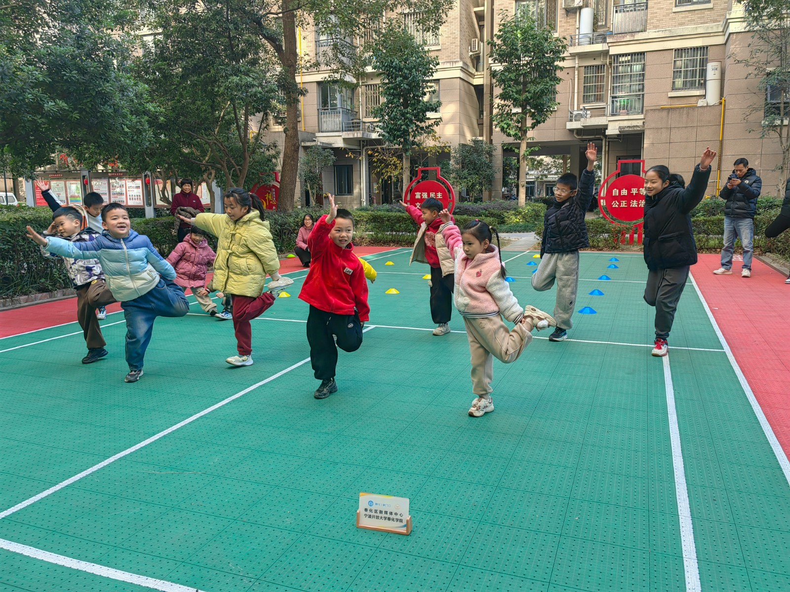 12月14日下午,“奉化 | 家门口”社区平台联合宁波开放大学奉化学院,在东郡尚都邻里中心一楼精心举办了一场集运动趣味与语言学习于一体的儿童体适能双语主题活动,吸引了众多小朋友踊跃参与。