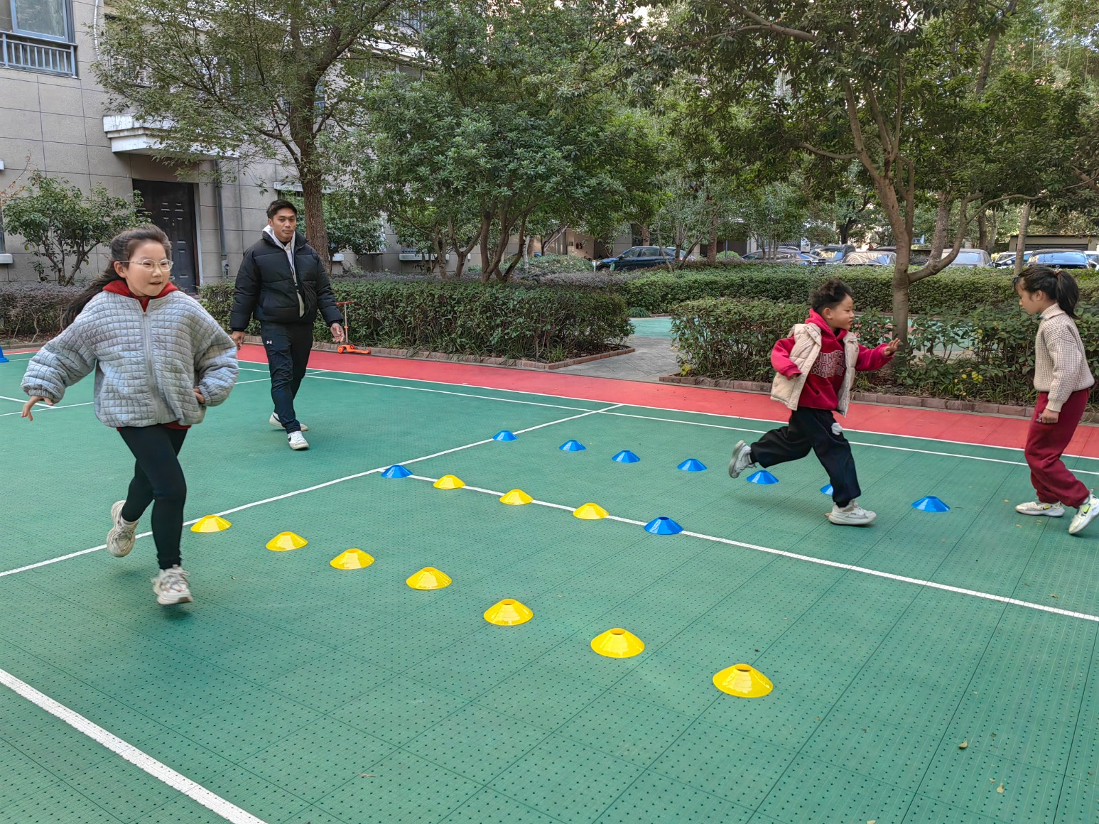 活动特别邀请应老师现场指导,他结合儿童身心发展特点,设计了一系列趣味体能动作。他手把手带领小朋友们完成一个个体能动作,耐心纠正姿势,确保孩子们在安全运动的同时,充分锻炼肢体协调性。更有外教老师惊喜助阵,全程采用中英双语互动教学,用生动有趣的语言引导孩子们参与游戏,让孩子们在奔跑、跳跃、拉伸的过程中,既增强了体能,又接触到趣味英语表达,收获了运动与学习双重体验。