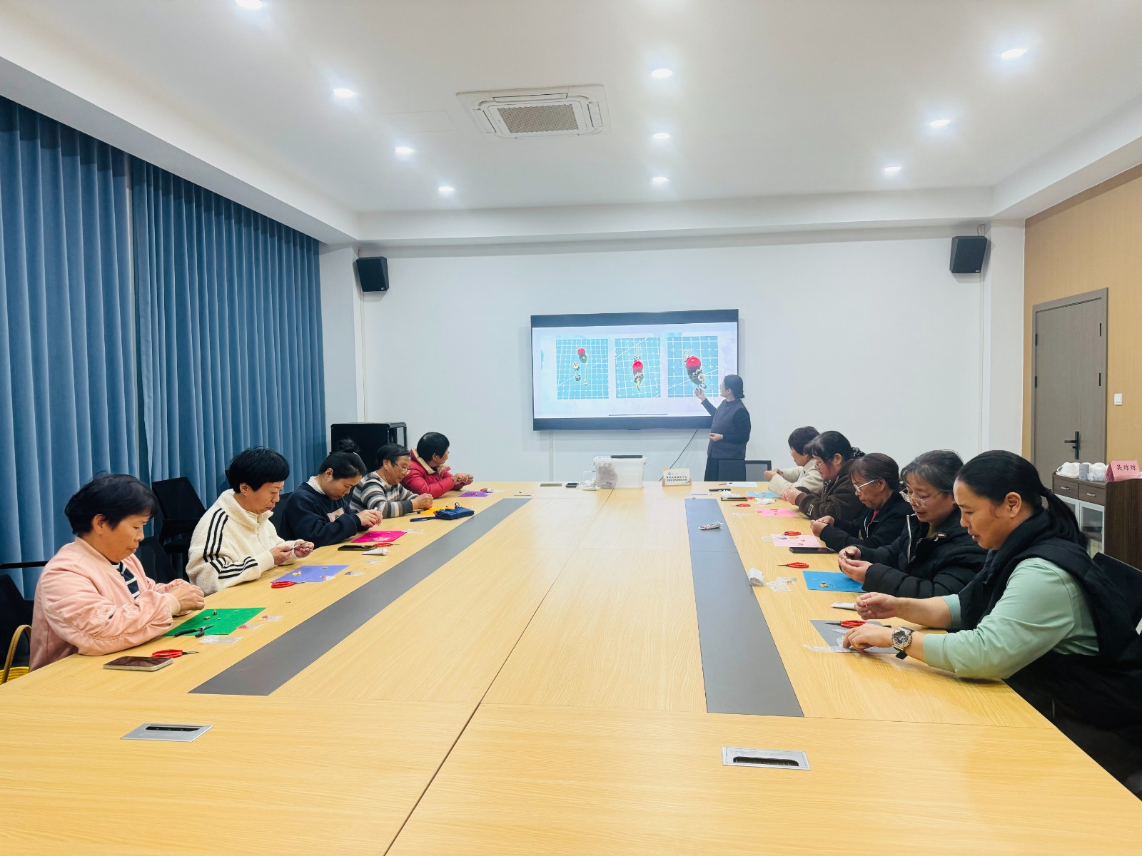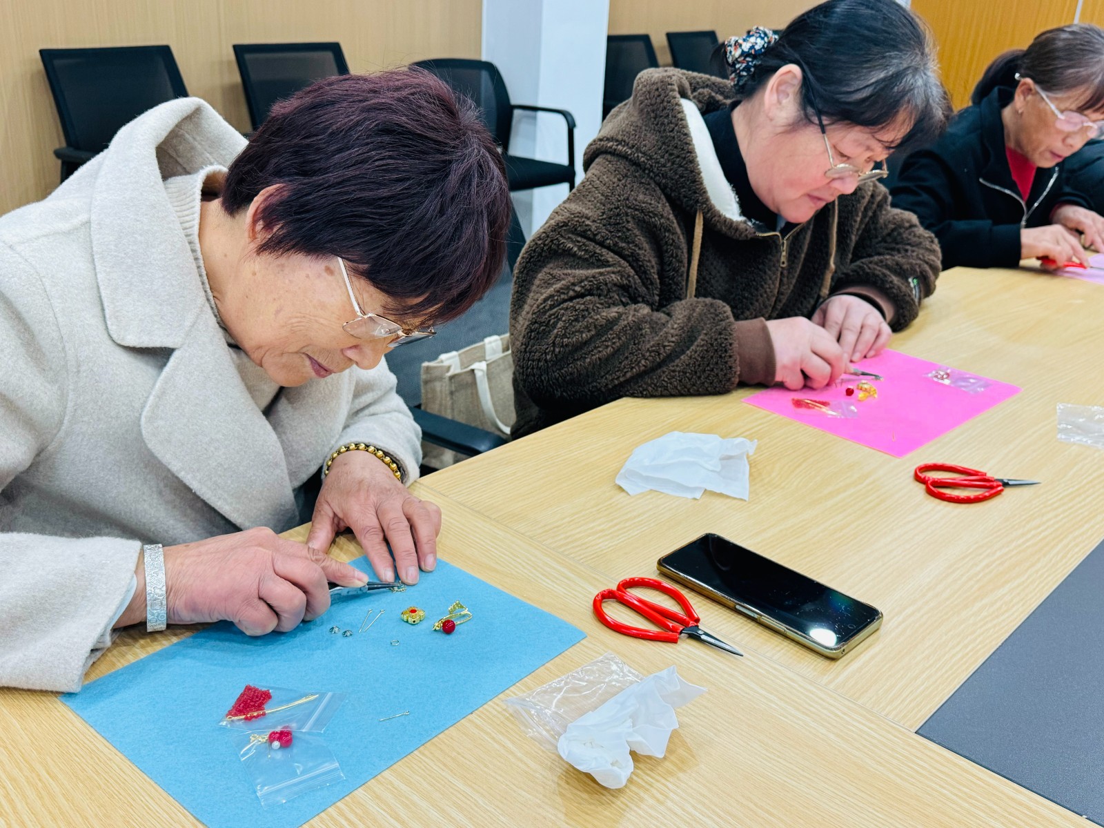 一缕丝线缠绕古今韵味,数枚珠玉缀就如意芳华。12月19日傍晚,“奉化|家门口”社区平台联合宁波开放大学奉化学院在锦轩未来社区开展“如意宝相花”压襟手工制作活动,居民们在指尖穿梭间探寻中国传统服饰配饰的独特魅力,沉浸式感受手工创作的别样乐趣。