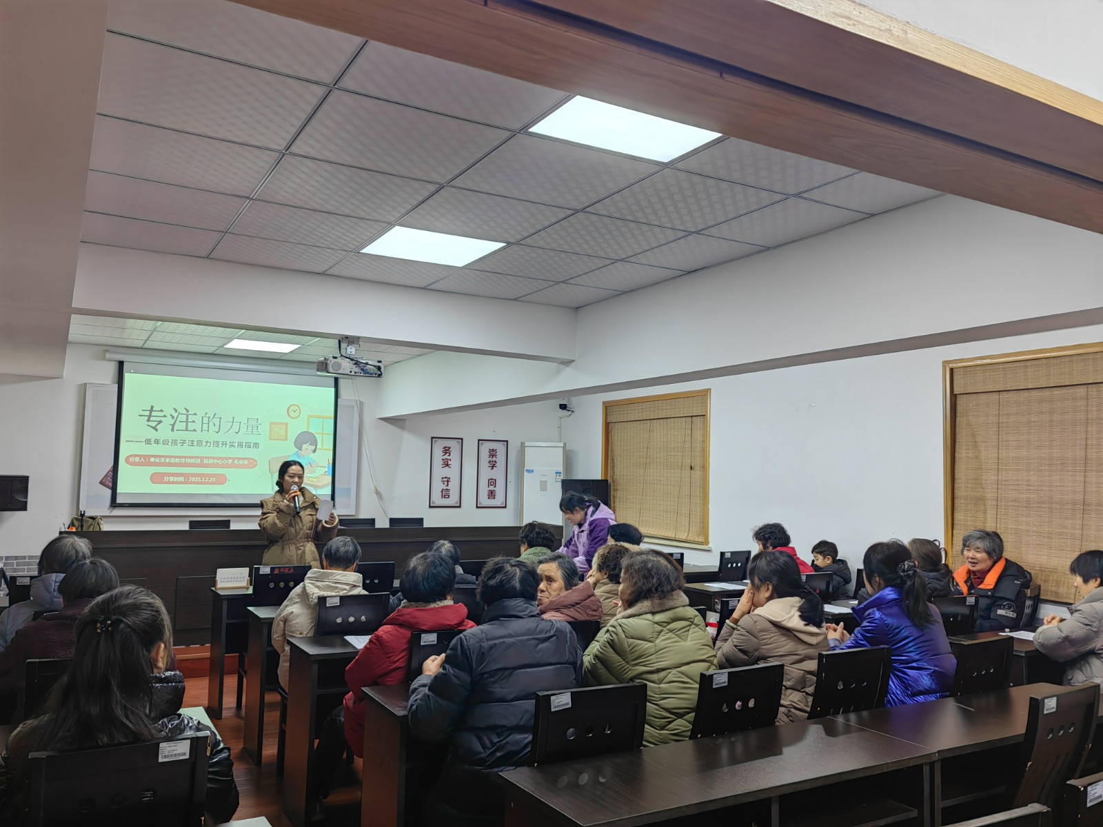 12月26日晚上,“奉化 | 家门口” 社区平台联合宁波开放大学奉化学院、奉化区学生成长指导中心在金钟未来社区开展“低年龄孩子专注力提升实用指南”主题讲座,这场专为辖区中老年居民定制的育儿分享会,破解隔代育儿中的专注力培养难题,吸引众多居民参与。