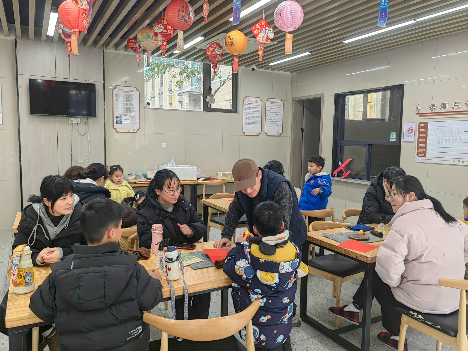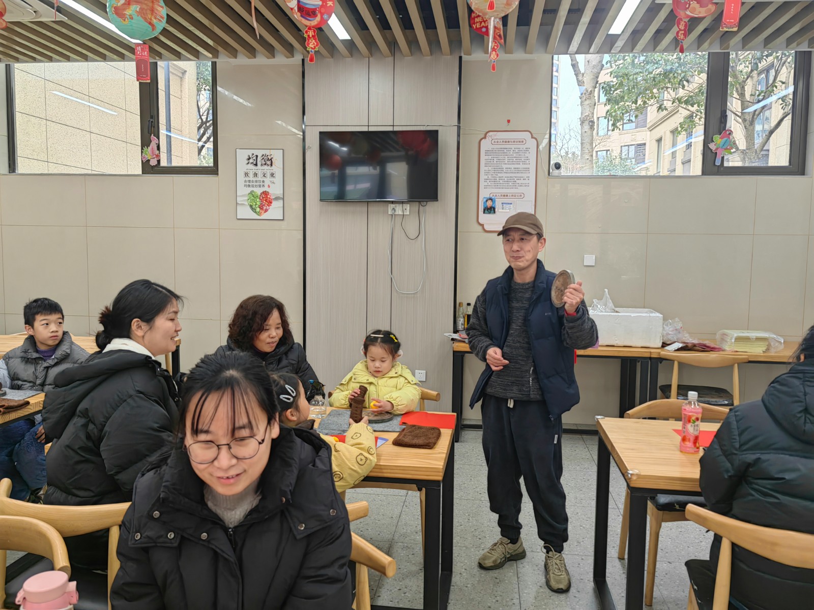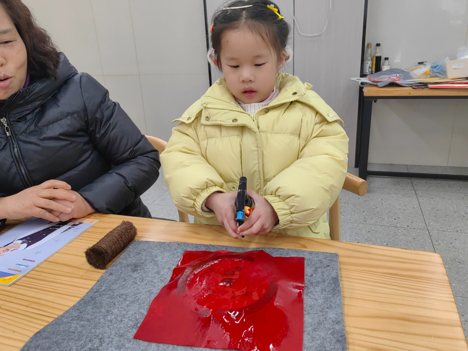 1月24日下午,“奉化 | 家门口”社区平台联合宁波开放大学奉化学院,在金钟未来社区时代望府老年食堂开展创意拓印画亲子活动。专业指导老师周老师亲临指导,带领亲子家庭解锁拓印艺术的独特魅力,现场欢声笑语不断,创意满溢,处处洋溢着温馨的亲子氛围。