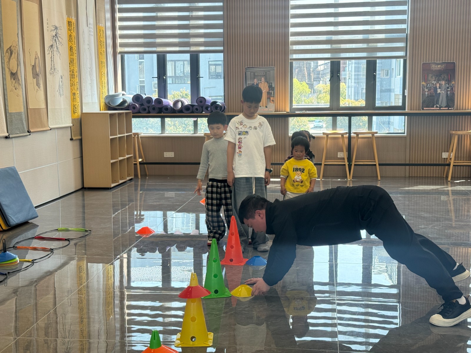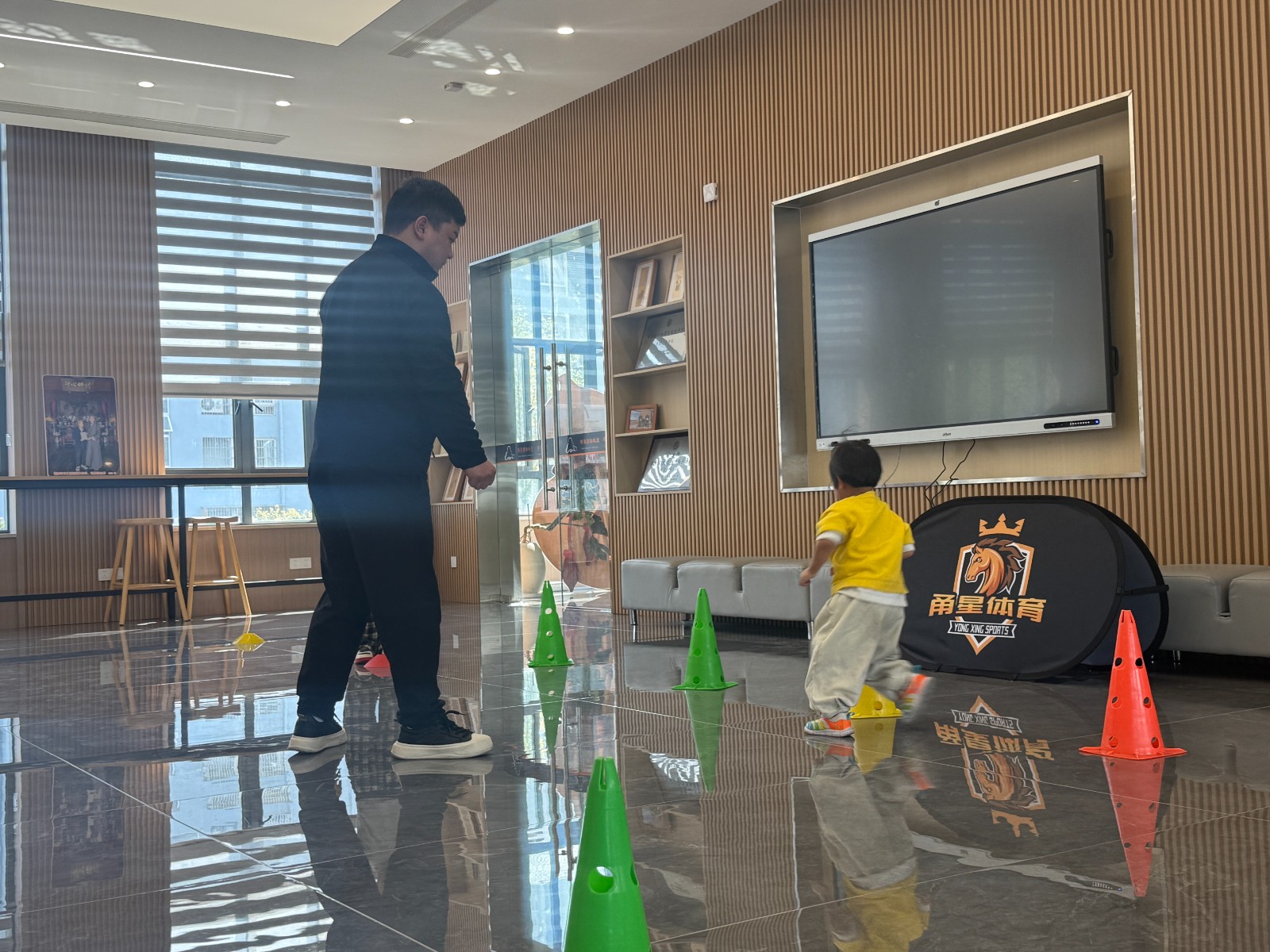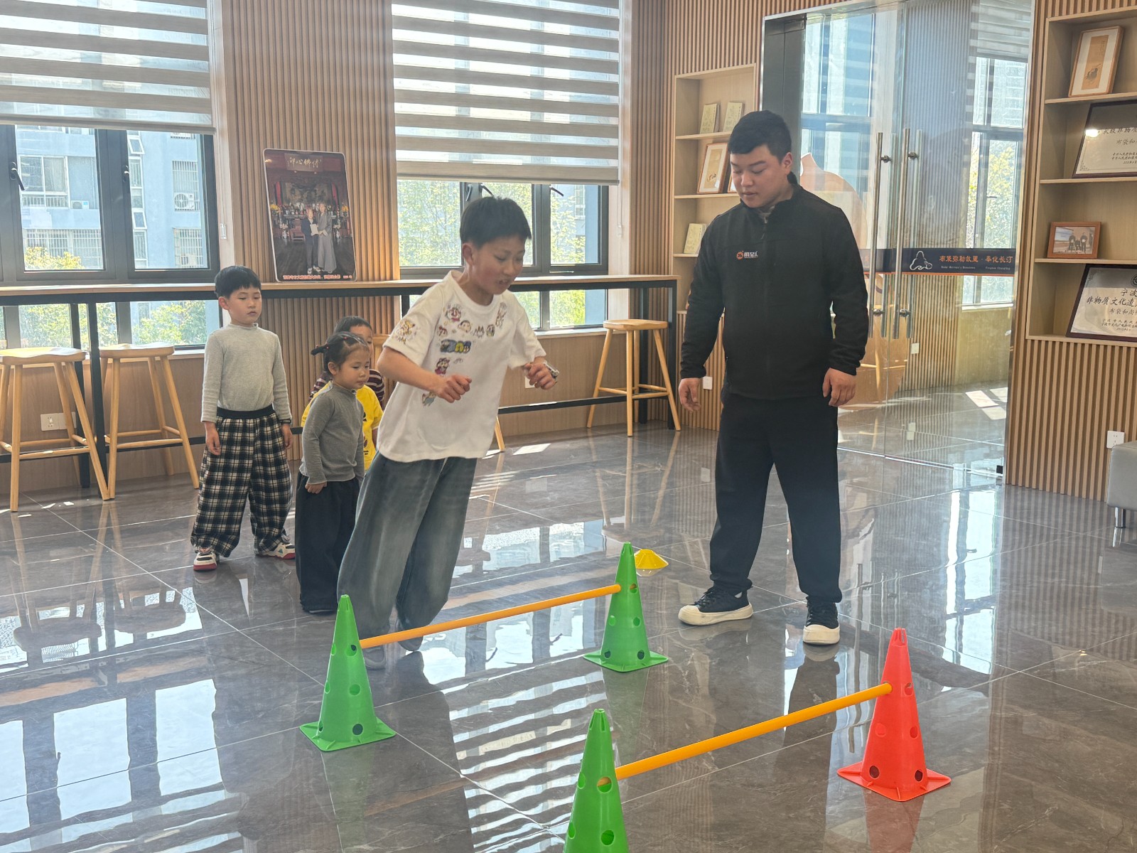 活动现场,专业教练带领孩子们有序列队,用生动有趣的方式讲解动作要领。孩子们踩着色彩鲜明的标志盘,眼神专注、精神饱满,在平衡训练、协调练习与趣味游戏中尽情奔跑、释放活力。教练全程耐心指导,及时纠正动作姿势,确保每位孩子都能安全高效地参与运动。