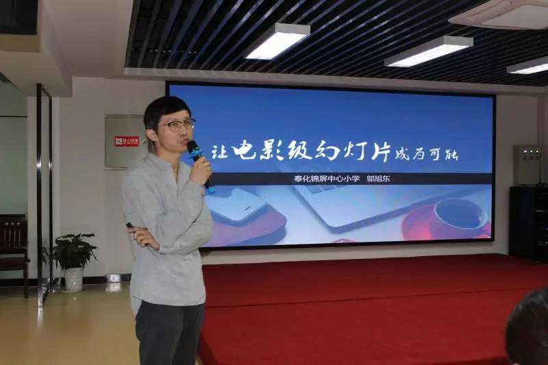 培训的第二课由锦屏中心小学的邬旭东老师主讲——《如何制作有思想的PPT》 ,让电影级幻灯片成为可能。邬老师的讲课颠覆了我们对PPT的认知,邬老师从乔布斯的第一代苹果系统的发布会PPT引入,到如何让PPT成为我们宣教的有力助手,让学员们大开眼界,原来PPT可以这么做!学员们激动地坐不住了,纷纷站起来听、拍照,会后大家纷纷要邬老师的PPT。